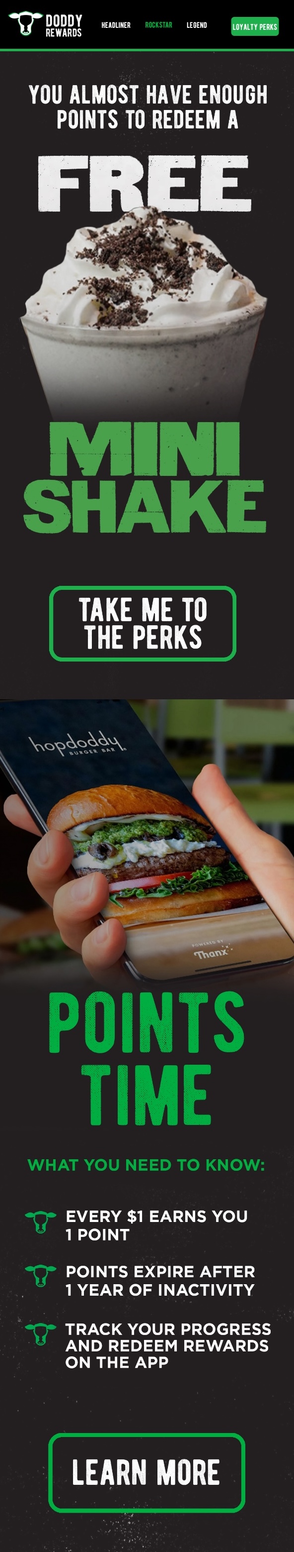 Honest Mary’s ran a reverse points-multiplier campaign via email and push to make rewards feel more valuable, keeping members engaged and returning more frequently.