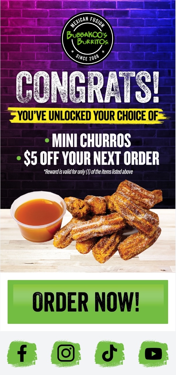 Bubbakoo’s promoted its rewards marketplace via email to highlight flexible reward choices, boosting app engagement and giving guests more reasons to return.