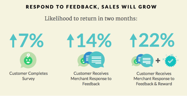 Perhaps the coolest part of interacting with customers? There’s a clear ROI case for why you should do it: Studies have shown that simply ASKING for feedback can increase customer frequency by 7%. Responding to that feedback raises that number to 14%. Responding to feedback and then rewarding the customer with a personalized reward or discount? +22% increase in frequency. Building relationships: now, with a clear ROI case!