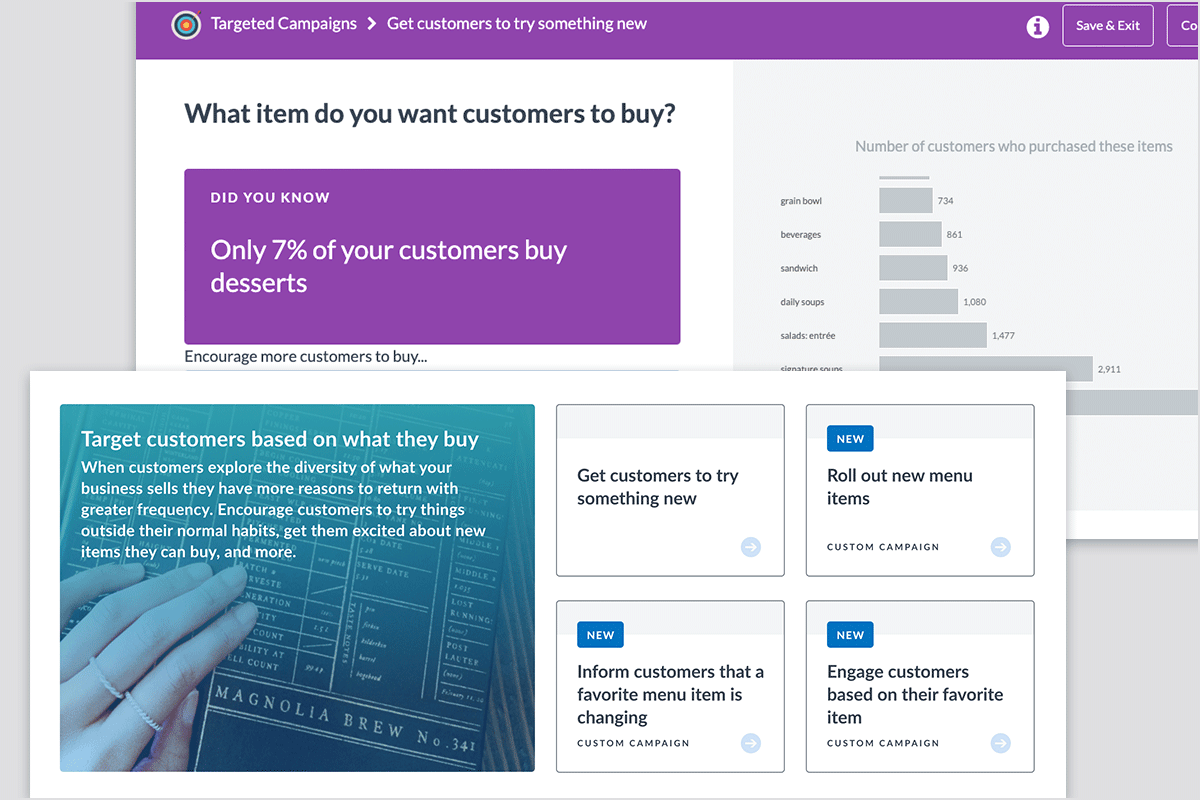 Thanx one-click campaigns can send targeted offers based on previous order history, can deliver favorite items as rewards, and can encourage a guest to try a new item, just to name a few examples.