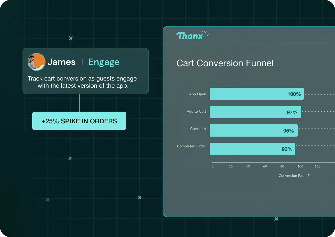 Thanx gives equal attention to both. On the web, every guest is recognized automatically, their preferences remembered, and reordering made effortless. Our digital ordering system for restaurants seamlessly enrolls guests in the loyalty program, turning first-timers into repeat buyers without extra steps.