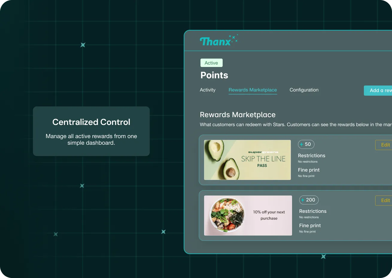 - Enable multi-channel reward templates where you can build a reward once, then deploy it anywhere: loyalty points programs, tiers, marketing campaigns, automated triggers, or one-off promotions.