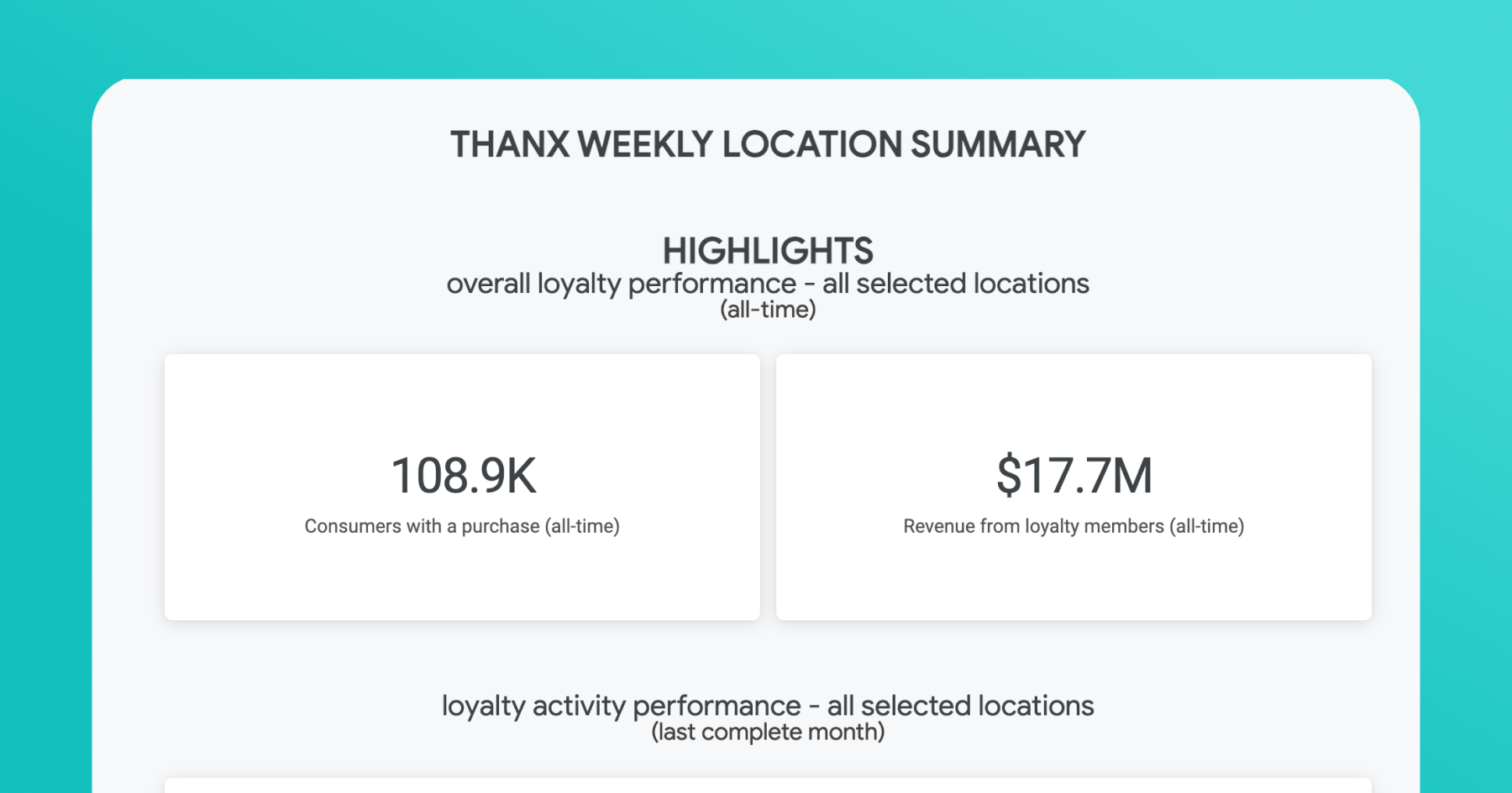 A new Weekly Location Summary report is now available in Insights Lab, purpose-built for managers who don’t use the full Thanx dashboard (franchisees, GMs, regional leads).
