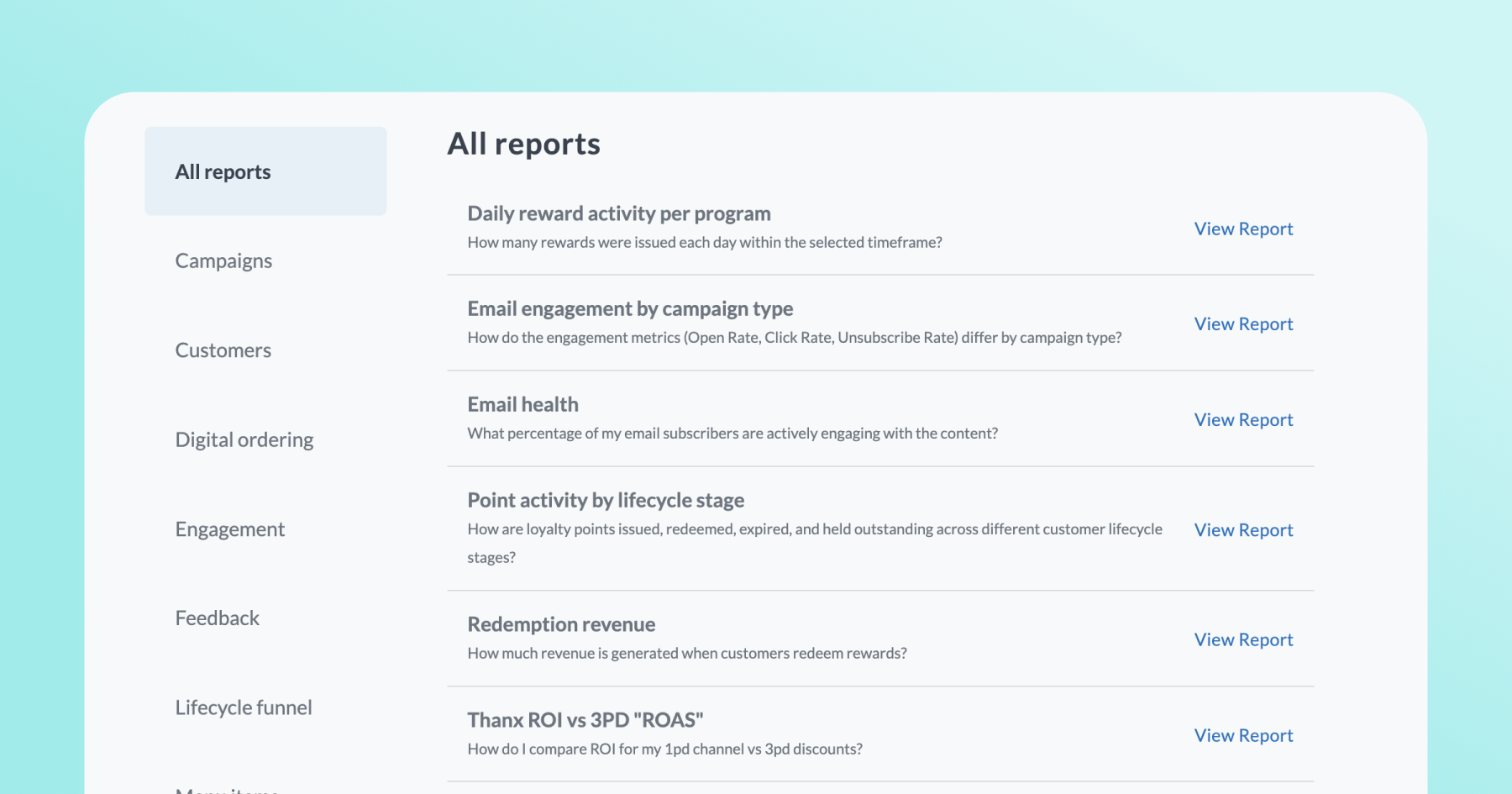 Operators need to understand not just what happened but what to do next. Insights Lab puts Thanx’s most-requested reports in a single place with short video tutorials explaining:
