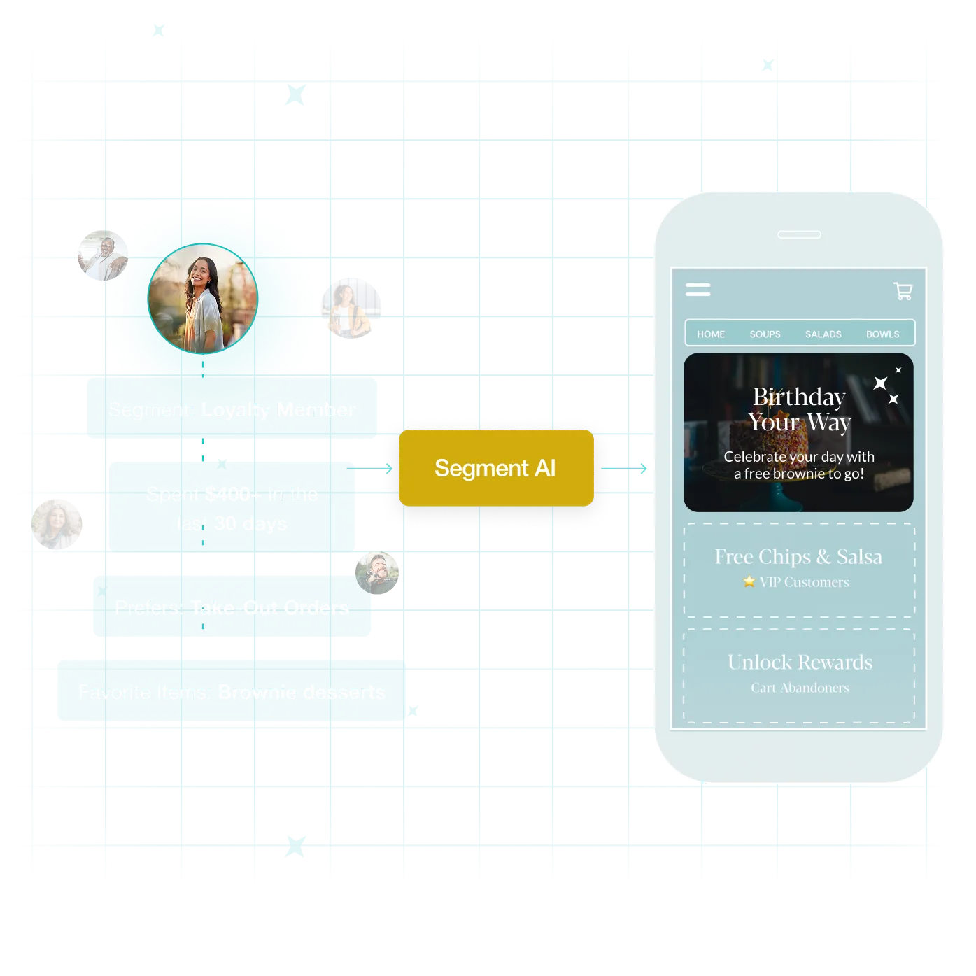 A restaurant personalization solution should capture rich customer profiles from every touchpoint (POS, ordering, in-app), then use AI to build sophisticated segments in seconds. From there, you set up automated campaigns that trigger instantly when guests match your criteria, whether that's abandoned cart recovery, activation flows, or engagement campaigns. Built-in A/B testing and control groups prove what truly drives incremental frequency.