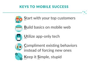 Understanding that consumers are fickle and that their app presence needs to impress in order to pay off, how do brands make sure that they’re investing in apps that achieve their objectives? First, let’s consider the keys to mobile success (we’ll use the acronym SBUCK to channel an especially well-done mobile app experience):